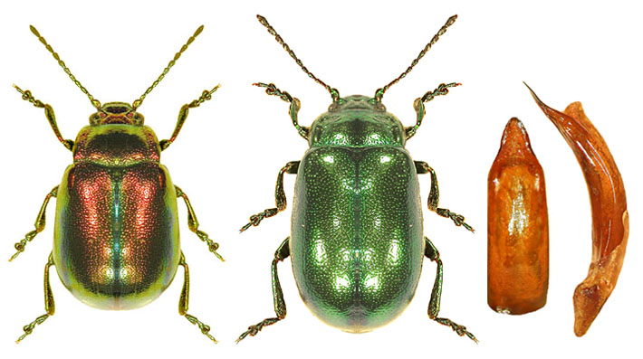 (female of ssp. fuscoaenea, right - apex of penis)