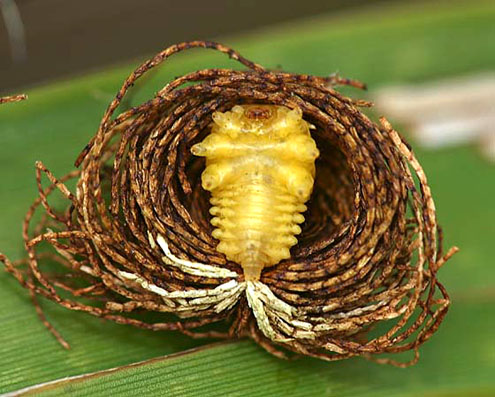 Fecal shield and larva